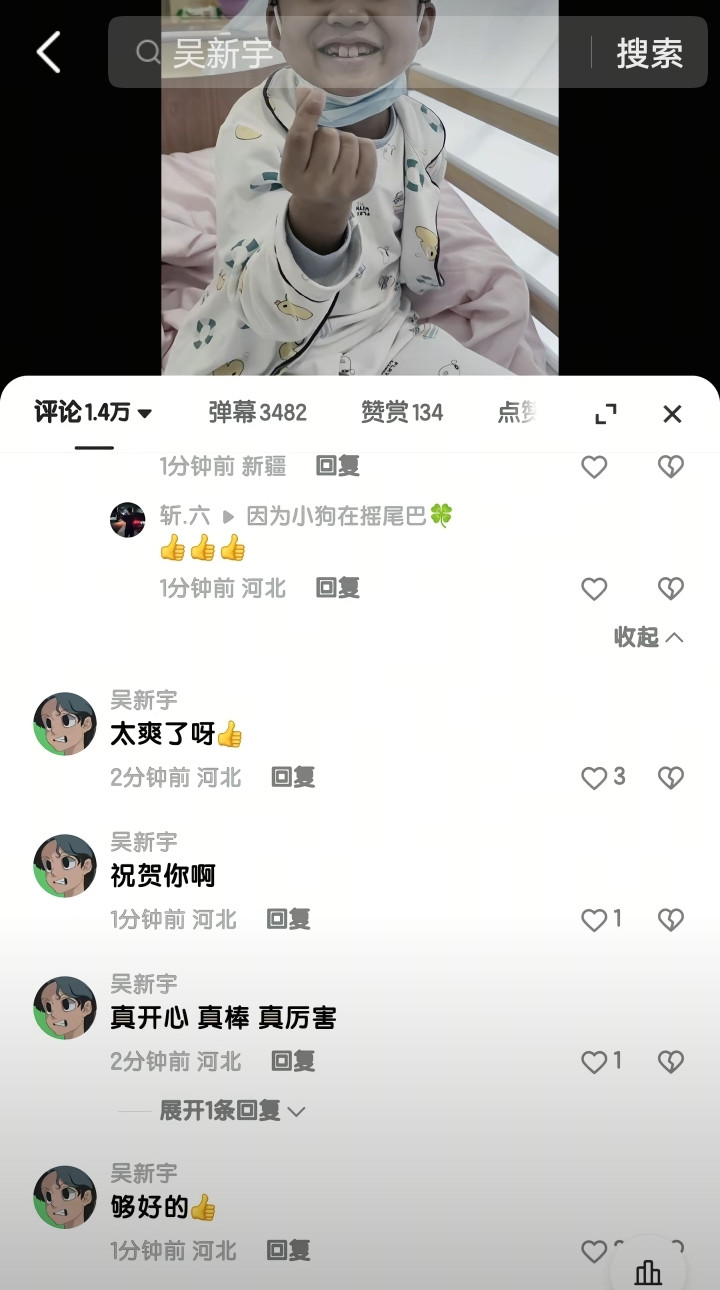 2月2日,极目新闻记者注意到,“吴新宇”在某短视频平台有88万多名粉丝,个人简介是“我要当网红”,IP地址显示来自河北,其账号仍然正常运行,只是辱骂豪豪的相关视频和评论已不可见。