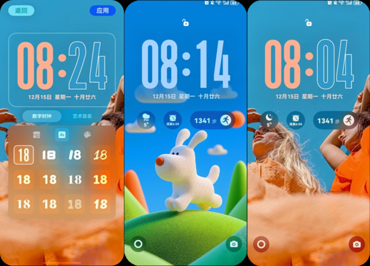 路径1:锁屏或桌面双指捏合->设置时钟及艺术签名->选择字体及配色