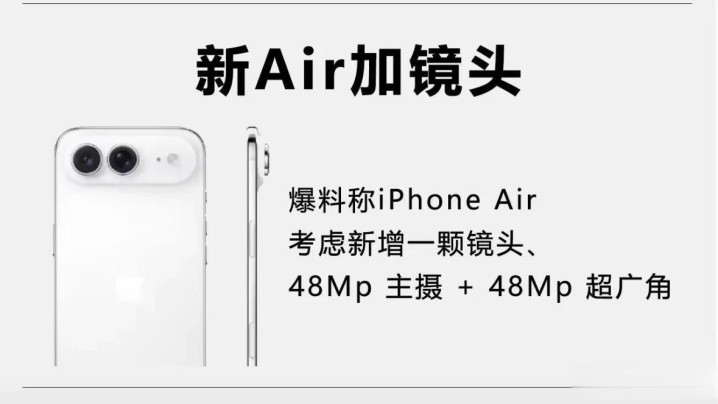 入门级新Air版本将迎来影像配置升级,计划新增一颗辅助摄像头,延续超薄机身设计理念。这一调整将缩小入门款与高端机型的影像差距,让更多用户享受到多焦段拍摄的便捷性。