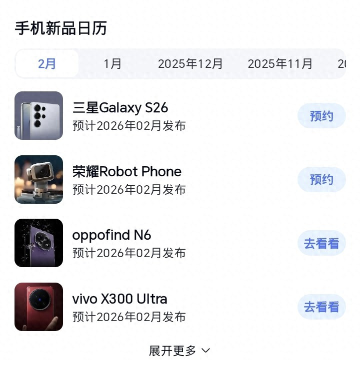 1:2026年2月即将拉开帷幕,智能手机市场的硝烟1味已扑面而来,多款重磅新机蓄势待发,其中三星Galaxy S26系列、荣耀Robot Phone、OPPO Find N6、vivo X300 Ultra尤为引人瞩目,它们各自承载着品牌的技术突破与市场野心,从影像革新到形态突破,从AI赋能到性能极致,无一不在挑动着消费者的神经。