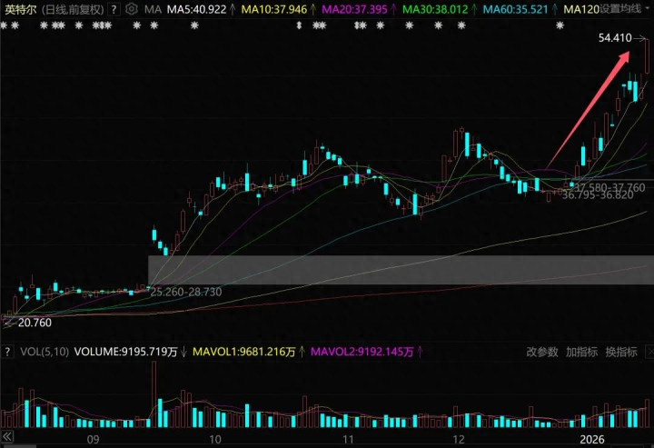 在CPU涨价潮之下,全球最老牌、最纯正的CPU公司英特尔,近期股价暴涨,1月份以来涨幅将近50%。