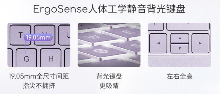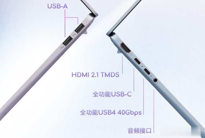 外观上,提供了风信子蓝与鸢尾花紫两款低饱和度但极具辨识度的潮流配色,打破了传统笔记本非黑即银的沉闷.