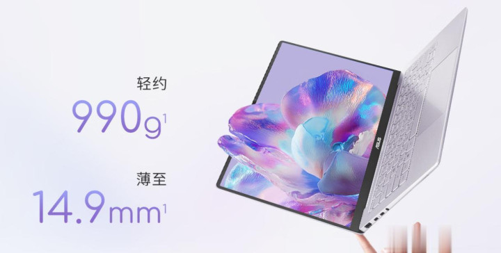 2025款的a豆14 Air,最轻的标准版也有1.29kg,距离人们想象中的超轻本还有一定的距离。而今年发布的华硕a豆14 Air 2026则首次跌破“1公斤”大关,990克属于目前笔记本电脑市场的极轻重量。厚度方面,则是14.9毫米,看起来还不够极致。