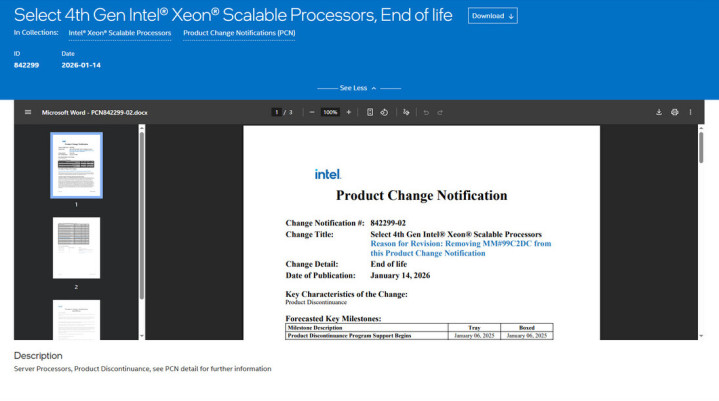 近日,有两份英特尔产品变更通知(PCN)文件意外曝光,文件显示英特尔计划停产部分第12代酷睿Alder Lake系列桌面处理器,以及第四代Xeon Scalable “Sapphire Rapids”(蓝宝石 Rapids)服务器级处理器,相关停产安排已明确给出时间节点。