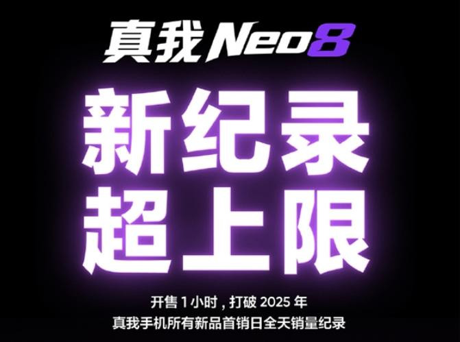 根据官方战报,真我Neo8开售仅一小时,就打破了2025年真我手机所有新品在首销日的全天销量纪录。