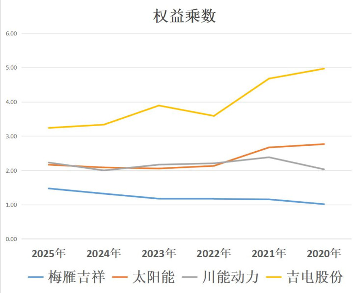最新三季度财务杠杆:吉电股份>川能动力>太阳能>梅雁吉祥
