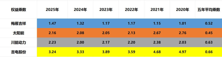 太阳能、川能动力、吉电股份,三家的财务杠杆在过去五年下降。