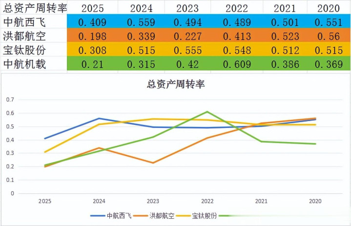 近几年,中航机载的总资产周转率,下降最为明显。