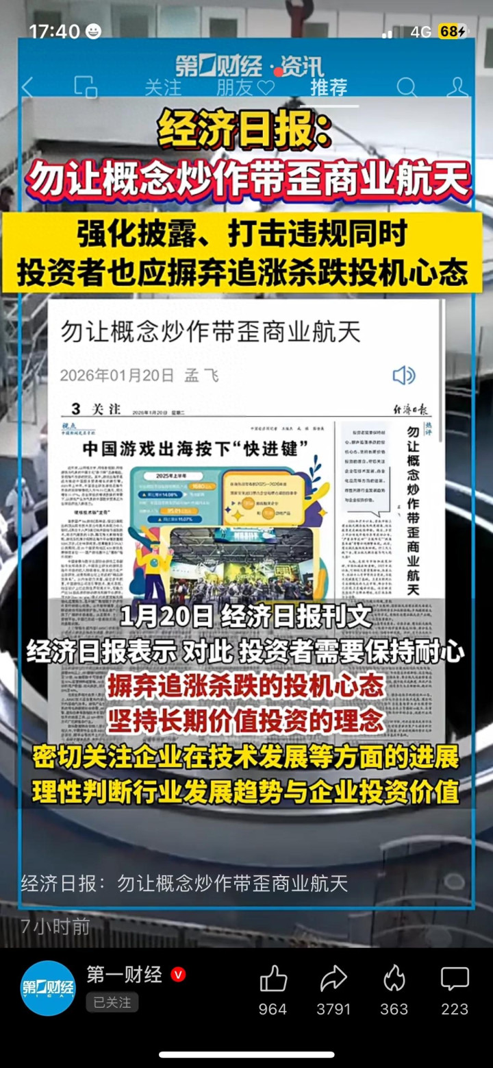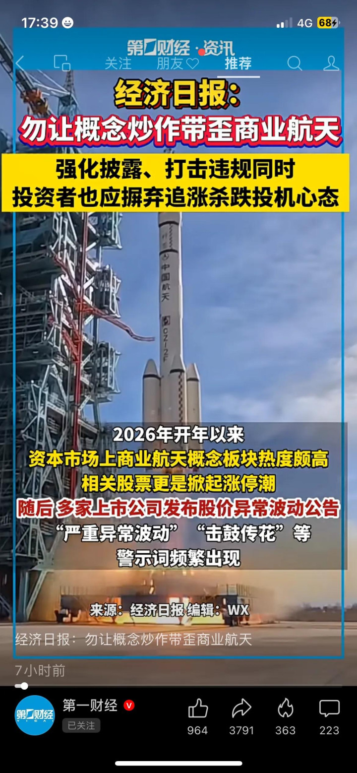 最近经济日报一篇文章在财经圈炸了锅:直接喊话“勿让概念炒作带歪商业航天”!我身边做投资的老周说,他去年追高买的商业航天ETF,现在已经跌了30%,套得死死的。