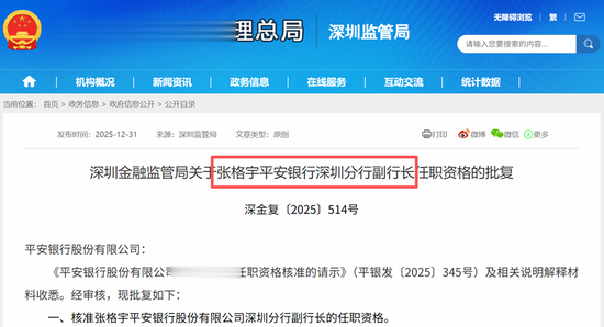 此外,近一个月的监管批复信息显示,平安银行有多位分行高管的任职资格获准,均为系统内提任。
