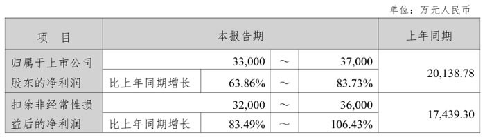 公司归属于上市公司股东的净利润预计为 33,000 万元至 37,000 万元,较上年同期的 20,138.78 万元增长 63.86% 至 83.73%;扣除非经常性损益后的净利润预计为 32,000 万元至 36,000 万元,较上年同期的 17,439.30 万元增长 83.49% 至 106.43%,盈利规模与增长幅度均表现亮眼。