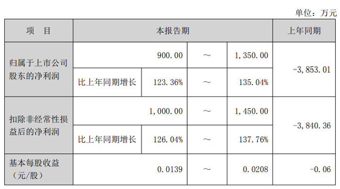 报告期内,公司归属于上市公司股东的净利润预计为 6500 万元至 8000 万元,上年同期该数据为 - 4856.66 万元;扣除非经常性损益后的净利润预计为 5350 万元至 6250 万元,上年同期为 - 148.32 万元;基本每股收益预计为 0.0935 元 / 股至 0.1151 元 / 股,上年同期为 - 0.0698 元 / 股。