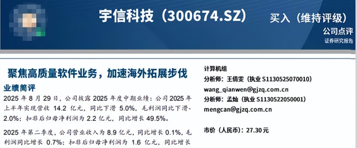 而这也把国金证券(600109.SH)坑得不轻,在Wind上收录的券商机构针对宇信科技发布的研报,最近的一份就是国金证券分析师王倩雯、孟灿,在8月底发布的,标题为《聚焦高质量软件业务,加速海外拓展步伐》,并给出了“买入”评级。
