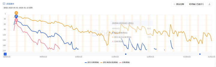 诛仙IP正统续作MMORPG《诛仙2》于2025年8月7日在国内公测,上线首日即登顶iOS游戏免费榜榜首。根据全球移动应用、游戏数据监测服务商点点数据的监测,《诛仙2》于2025年8月最高达到中国内地iOS游戏畅销榜27名,此后排名有所下滑。目前,该游戏已经跌出iOS游戏畅销榜前200名。