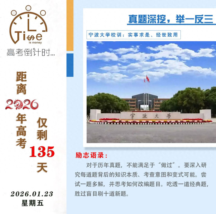 同学们,高考前的默默扎根,正为六月的绚烂绽放积蓄所有能量。这135天的坚持,每一个解开的难题、每一个战胜困意的清晨,都将在未来某个时刻,化作破茧成蝶的惊艳一瞬。