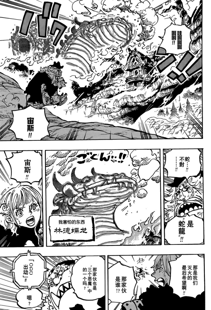 娜好意思和乌索普等东说念主也去学校扑灭大火,萨乌罗还在世,他和罗宾也跑到学校这里。娜好意思和宙斯正在降雨熄灭,麒麟戈姆圣就杀过来,他呐喊梦魇怪物吃了宙斯,米兰还好莉莉丝和弗兰奇赶过来,莉莉丝拿出高技术火器冰封了学校和藏书楼。
