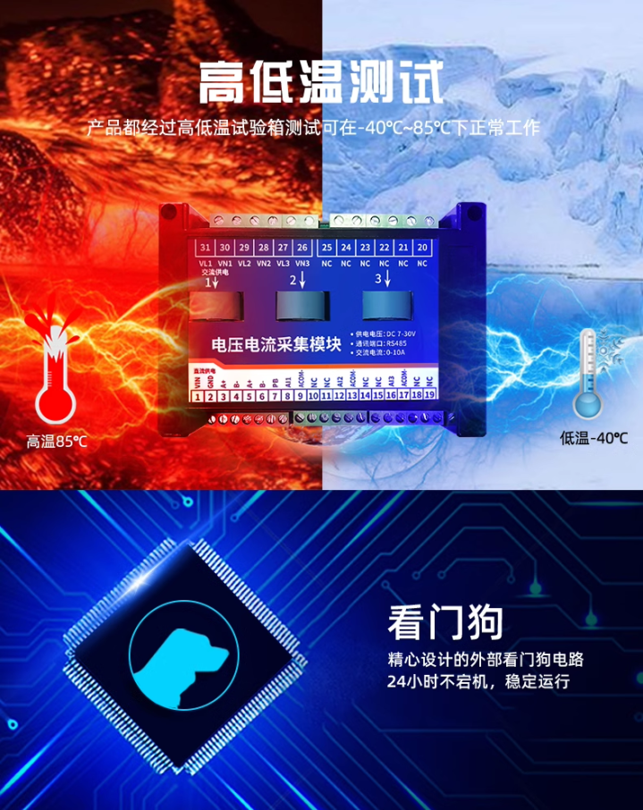 电参数采集模块是交流用电设备的专属用电数据捕手,核心聚焦交流设备运行中的实时电流参数监控与全周期电量消耗计量,把设备原本“看不见、算不清”的用电状态,转化为精准、可追溯的数字数据,是工业设备运维、能耗精细化管理、电气安全监控的核心基础配件。