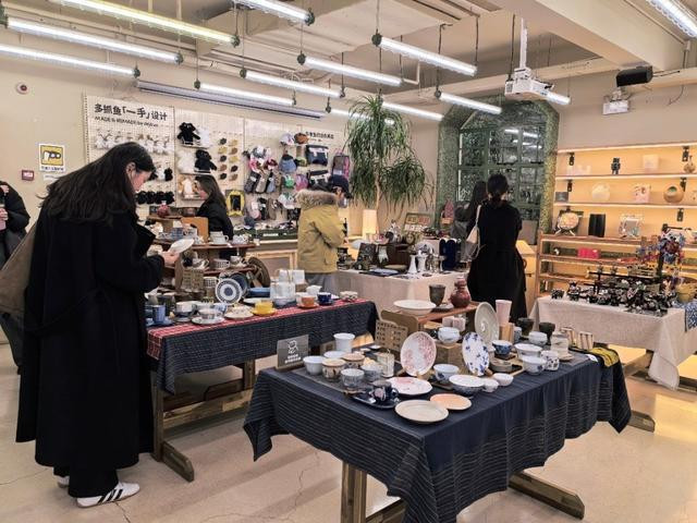 2026年1月17日15点左右,多抓鱼安福路店,手工艺和快时尚百货区主要售卖各类餐具。