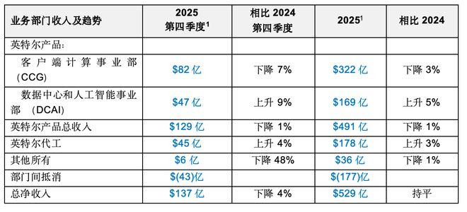 1月23日消息,英特尔公司发布了2025年第四季度及全年财报。第四季度营收137亿美元,同比下降4%。全年营收529亿美元,与去年持平。上述同比数据尚未针对2025年第三季度剥离Altera业务进行调整。