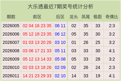 大乐透最近7期奖号和数据分析表
